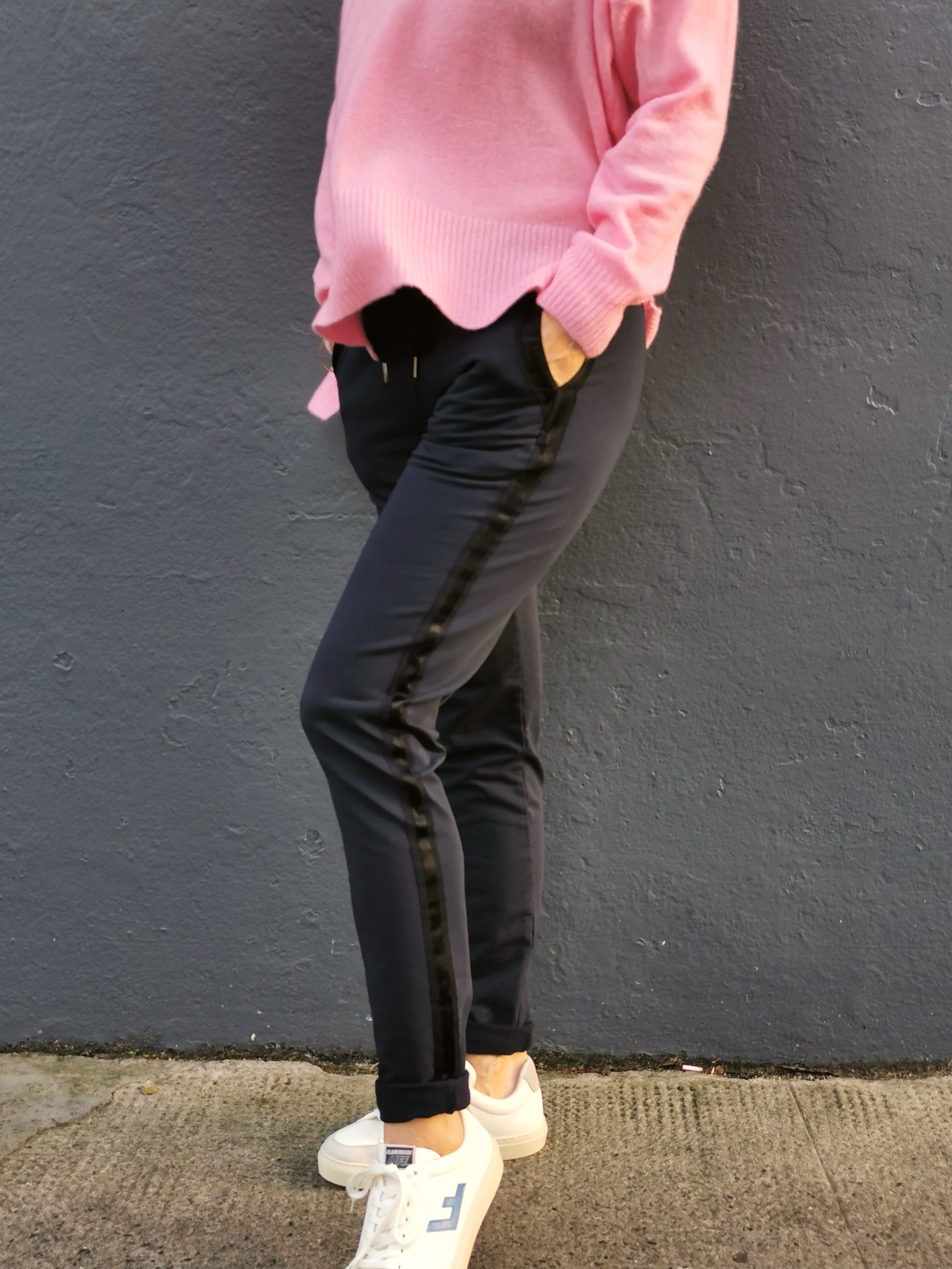 The Bailey Joggers are the perfect blend of comfort and casual style. Designed with an easy fit and soft stretch cotton, they feature a subtle side stripe detail and practical pockets for a relaxed yet polished look. Ideal for travel days, lounging, or running errands, these joggers offer all-day comfort without compromising on style. Pair with a simple tee or knit for effortless, everyday dressing.