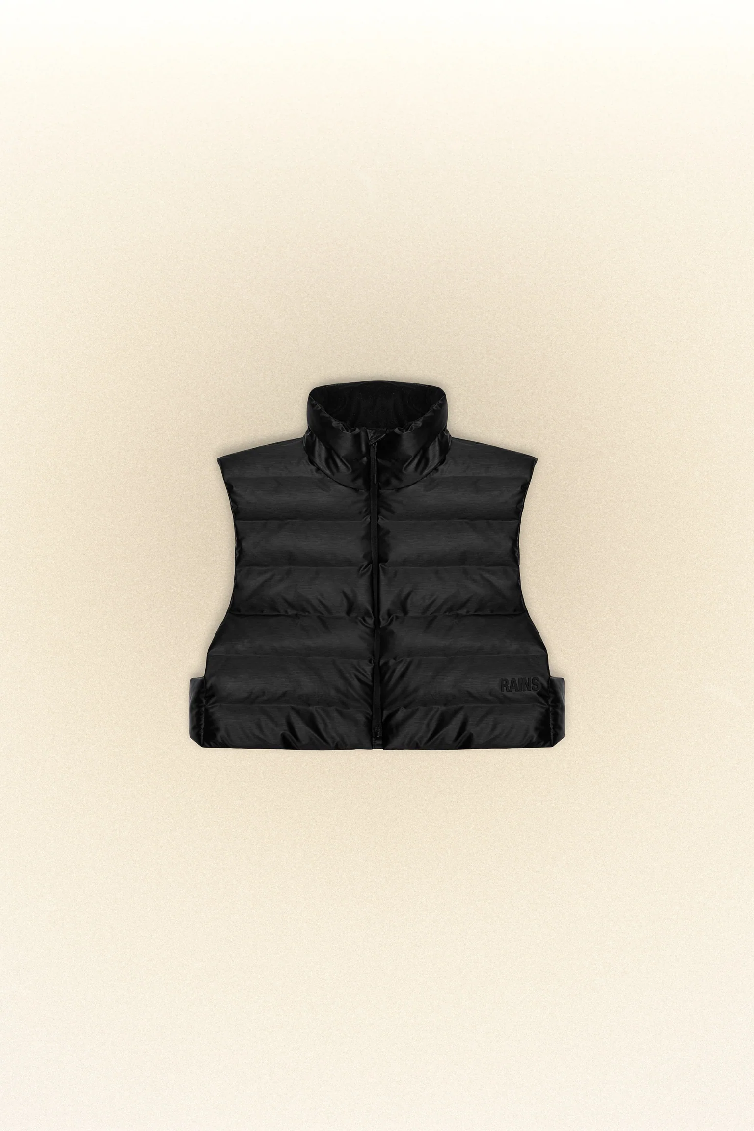 Bator Chest Warmer is a waterproof quilted vest, which can be worn under or over outerwear. An extra layer of insulation in cold winter climates. The sculptural silhouette arrives in a cropped length and is finished with Velcro fastened side straps for easy wear over outerwear.