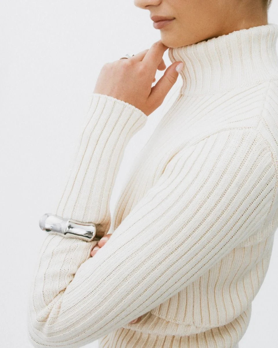 The pattern of peaks and troughs in bamboo is the inspiration for the evocative Cane line. Despite its bold, undulating form, this eye-catching bangle feels wonderfully lightweight. Designed to make a statement, it looks striking worn against bare skin or styled over a shirt sleeve for an edgy finish.