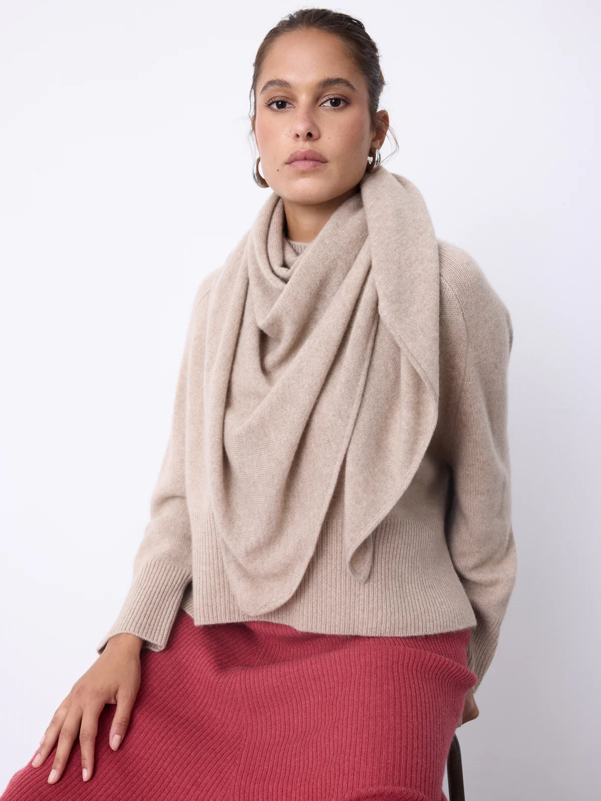 The Eleonore Triangle is a timeless scarf crafted from 100% pure cashmere. Designed in a modern triangular shape, it drapes effortlessly around the shoulders or neck, adding both warmth and elegance. With its soft 2-ply, gauge 12 knit, this piece offers the ultimate in comfort and luxury, perfect for layering throughout the season.