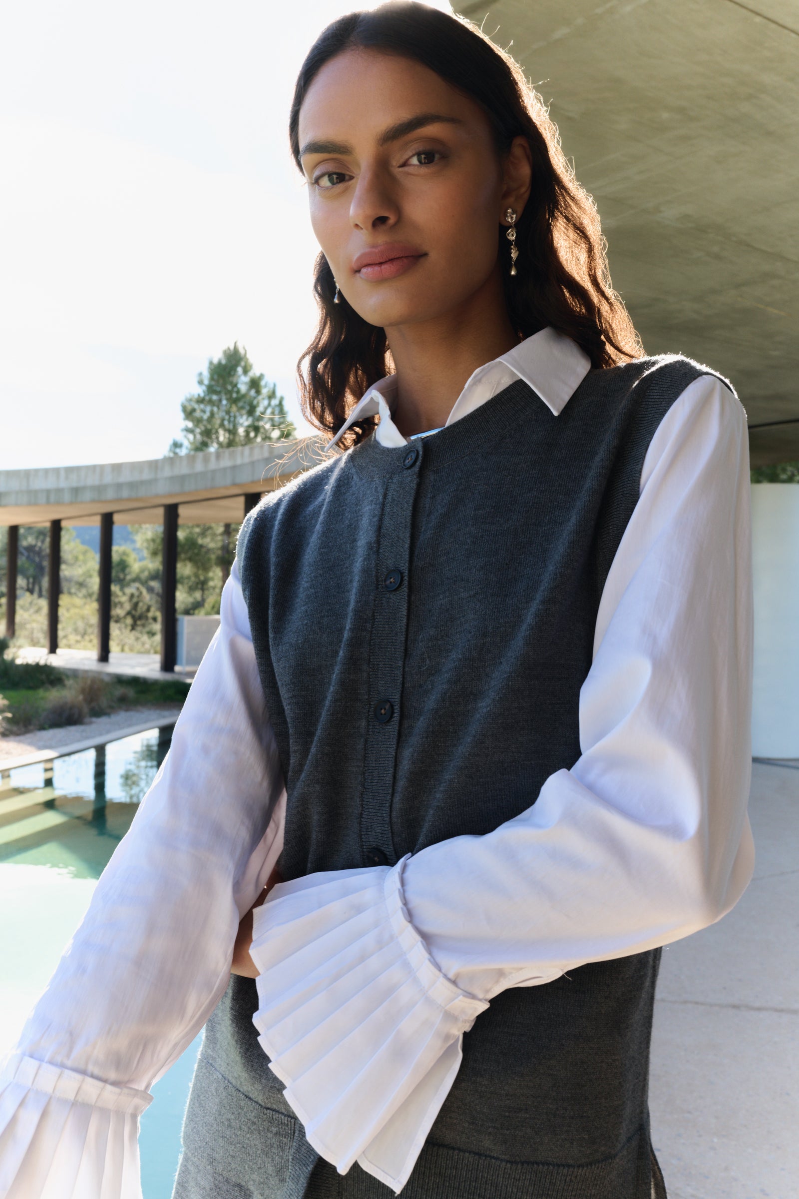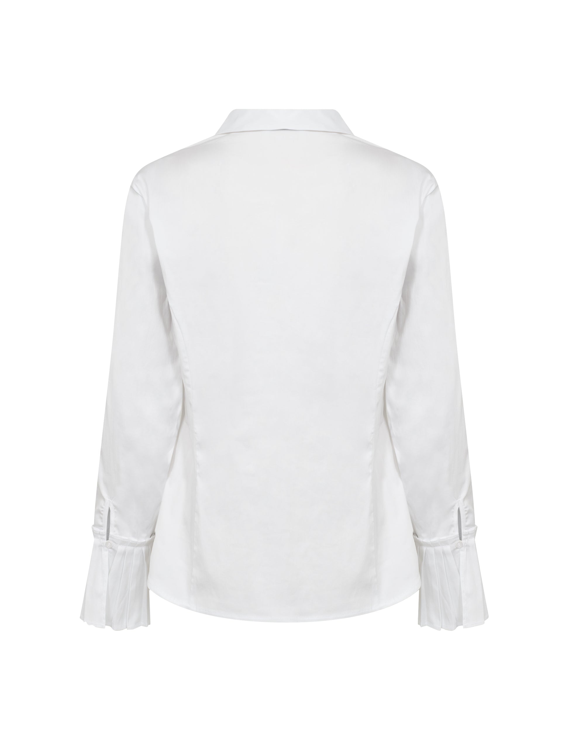 This elegant shirt is defined by its voluminous sleeves, delicate pleats, and a refined folded-down collar. Its structured yet feminine silhouette makes it a versatile piece, perfect for both office wear and elevated everyday styling. Pair it with tailored trousers or denim for an effortlessly chic look.