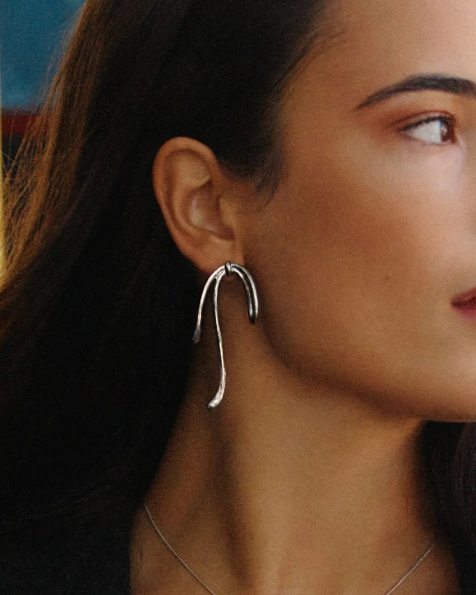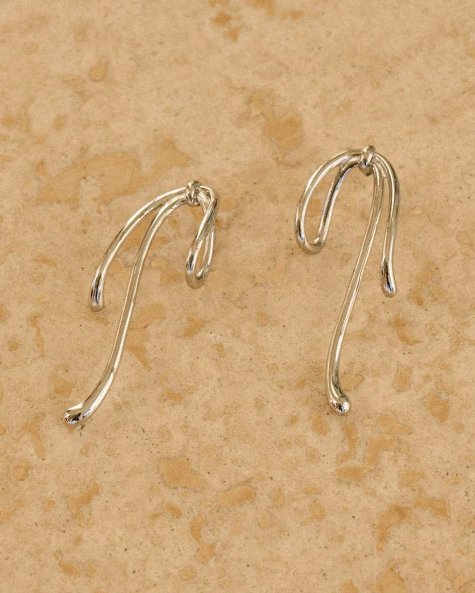 The Lace Earrings bring together soft, sculptural forms and a bright finish to create a playful, feminine look. Inspired by the delicate lacing of a ballet shoe, their elongated silhouette makes them both graceful and striking, perfect for elevating everyday outfits or adding polish to eveningwear.