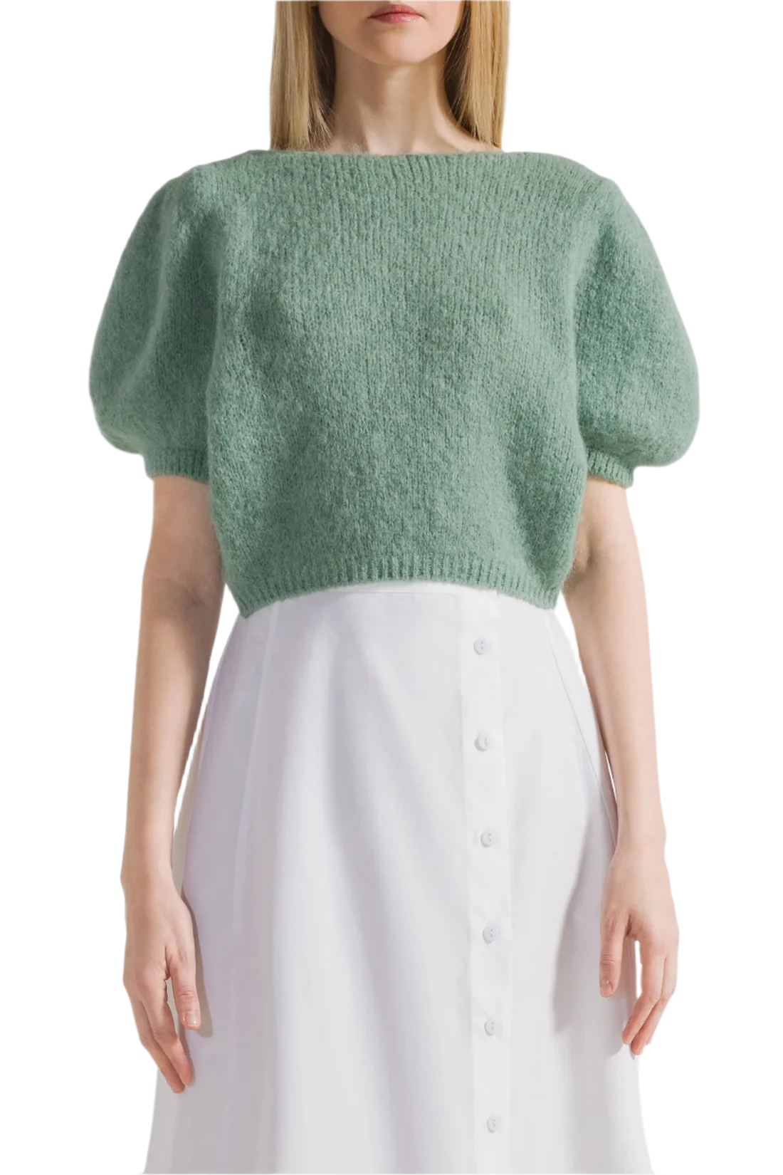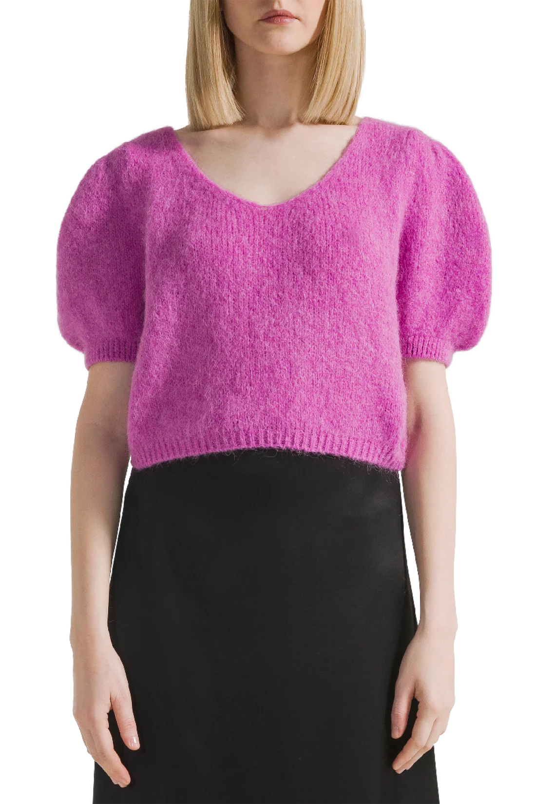 The Lolanda pullover, featuring a shortened design, provides an exceptionally soft touch, imparting a sense of airiness and lightness to your ensemble. Its short sleeves, adorned with an elastic band, make it an ideal choice for the spring and summer seasons.