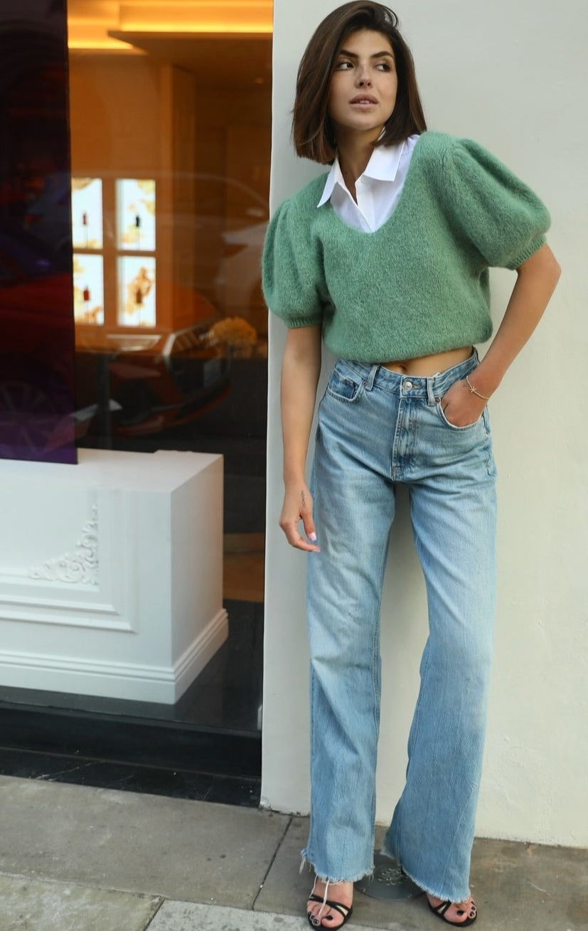 Lolanda pairs perfectly with high-waisted trousers or a skirt for a sophisticated business attire, as well as with jeans for a relaxed, casual style.