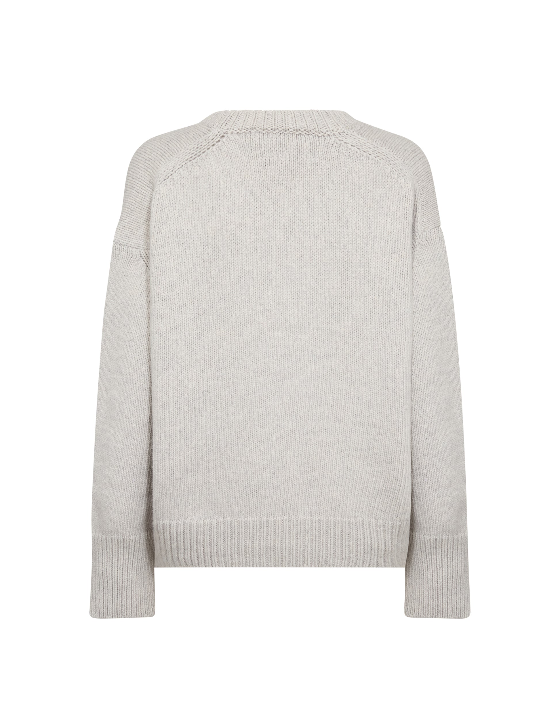 Perle Pullover is a refined knit crafted from a luxurious blend of merino wool and cashmere. Featuring a ribbed neckline, dropped shoulders, and a straight hem, its plain knit texture offers a timeless and versatile look. Designed for comfort and ease, it pairs effortlessly with both tailored trousers and casual jeans.