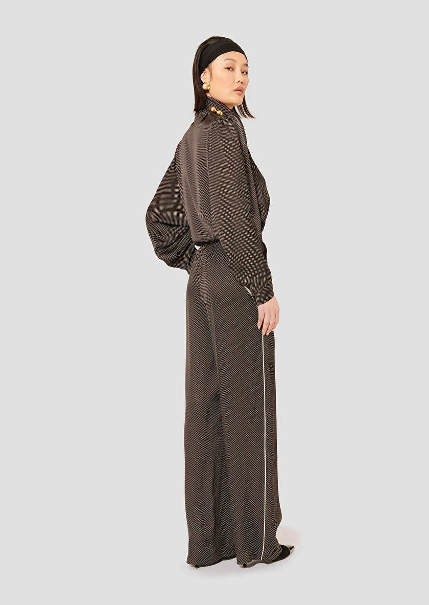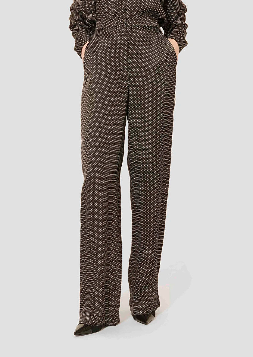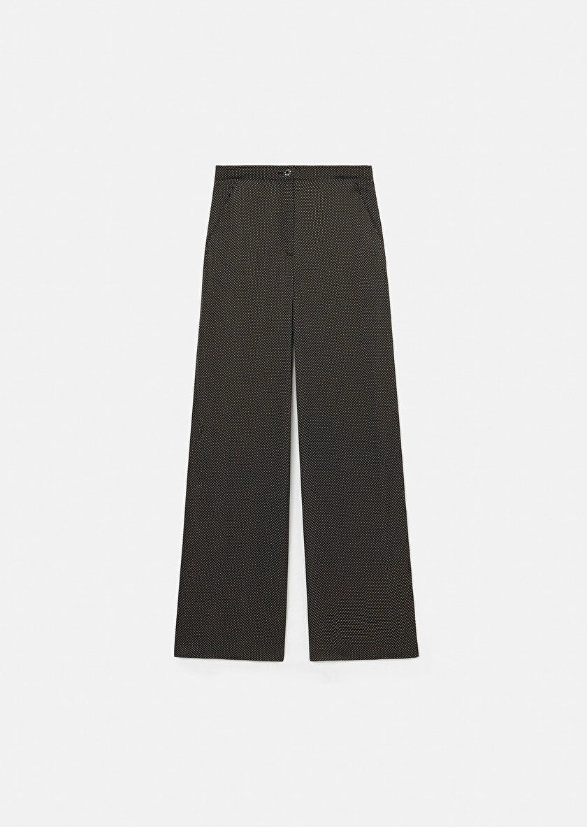 These black pants printed with white polka dots feature a straight, flowing leg and two side pockets. They close with a zip and a black jewel button.