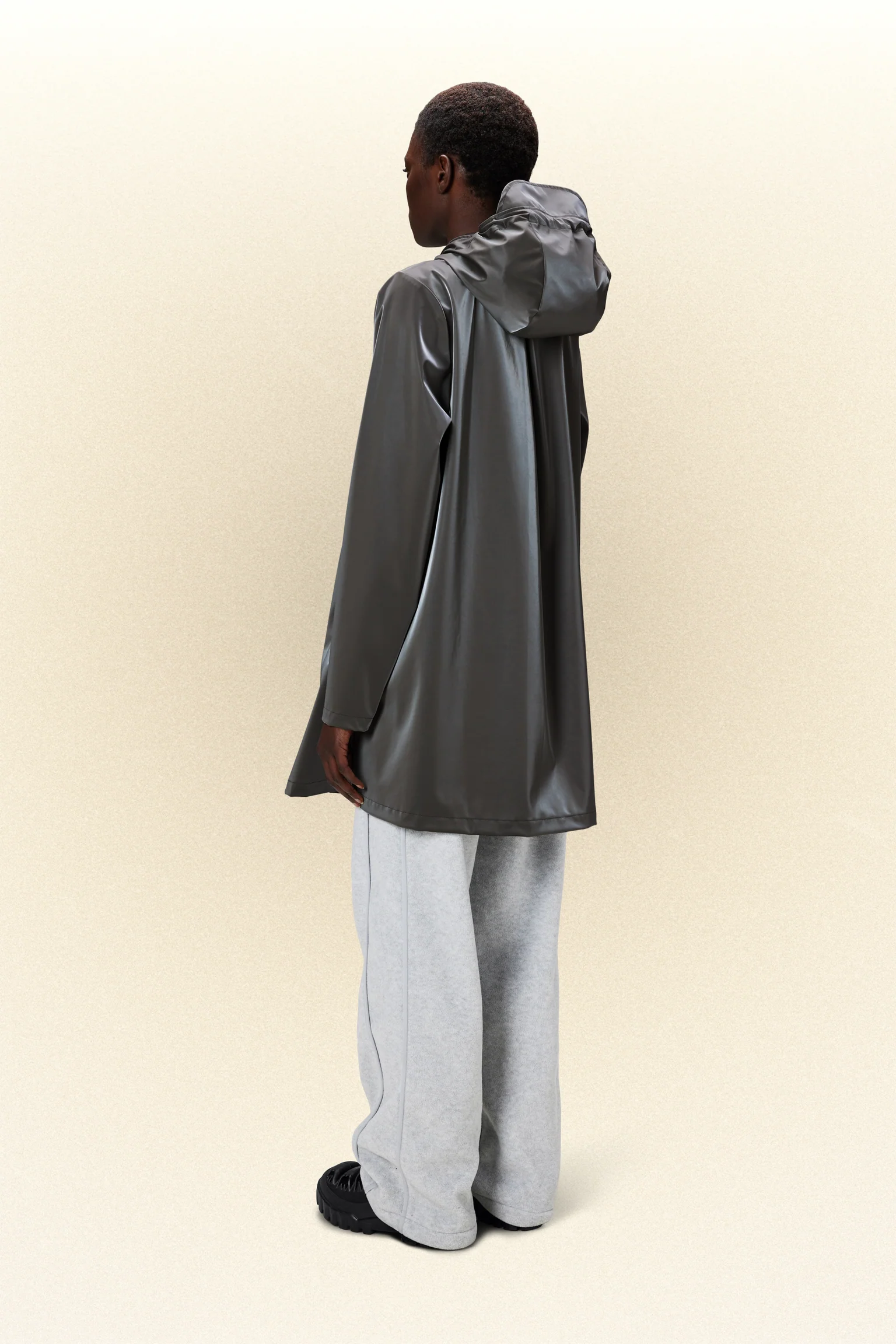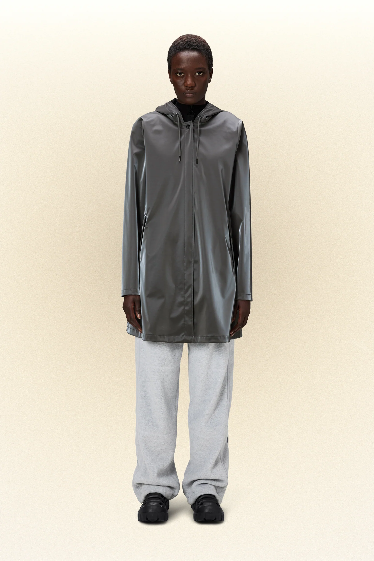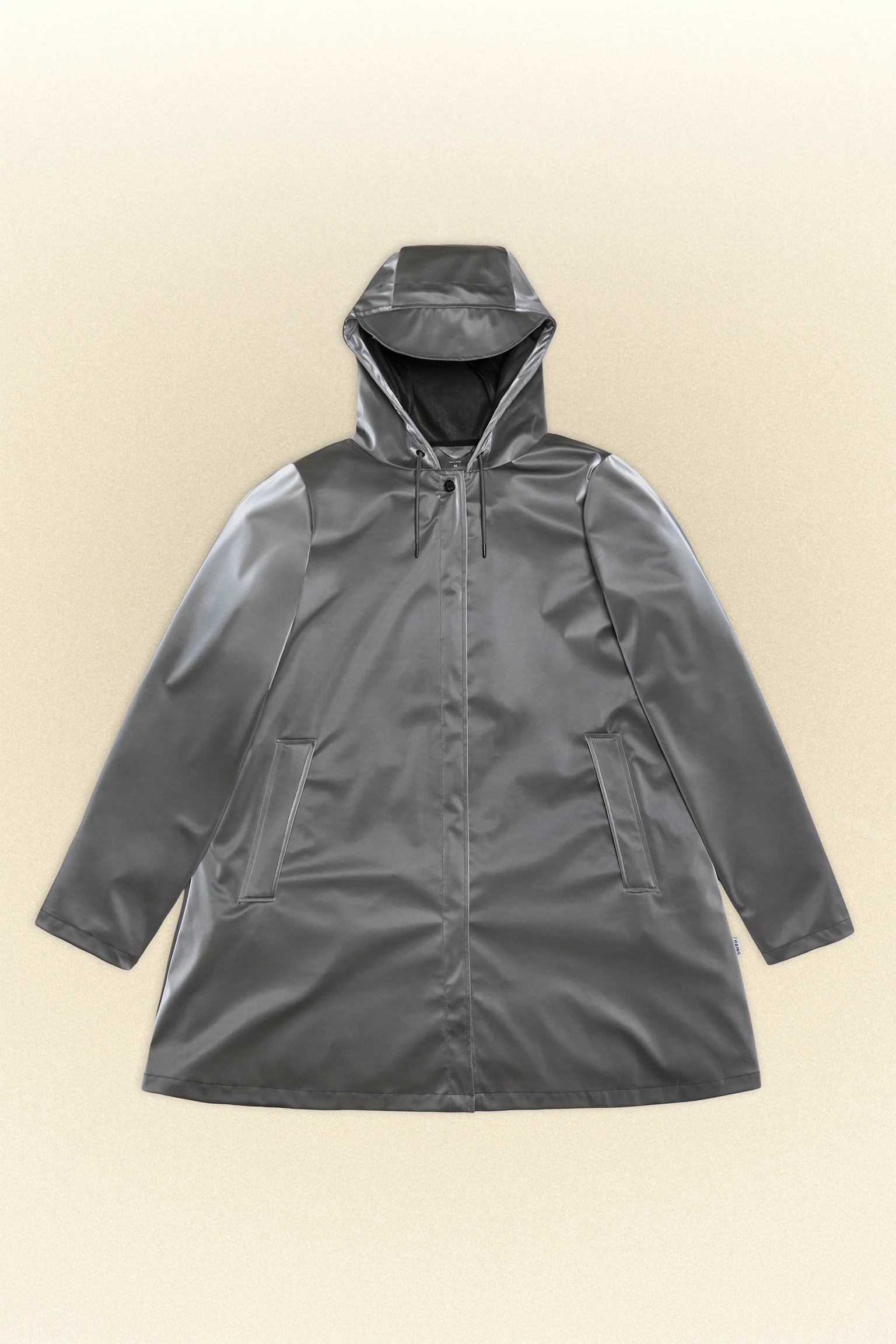 A-line Jacket is a women’s raincoat characterized by its A-shaped silhouette that gradually builds in volume from chest to hem. A-line Jacket features a drawstring hood with built-in cap, two side pockets and snap adjustable cuffs. The jacket is completed with hidden snap buttons and a front placket.