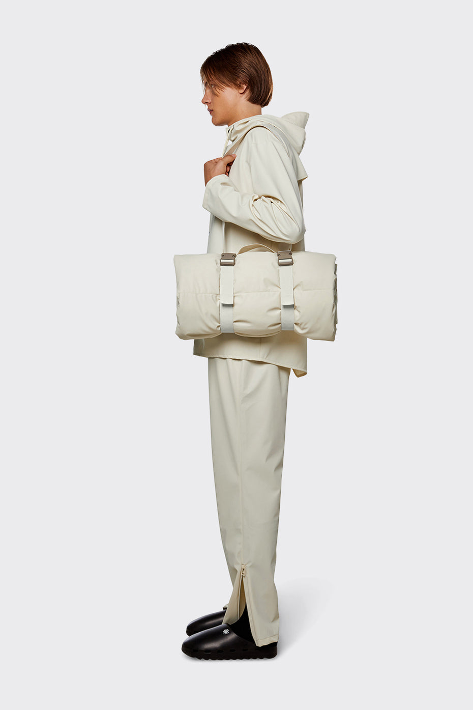 The comfort, warmth and waterproof qualities of Rains’ quilted outerwear in a packable blanket. On one side is made of quilted and padded polyester with a soft and warm feel. The reverse side is cut from Rains’ signature waterproof fabric, making Blanket a versatile and protective layer