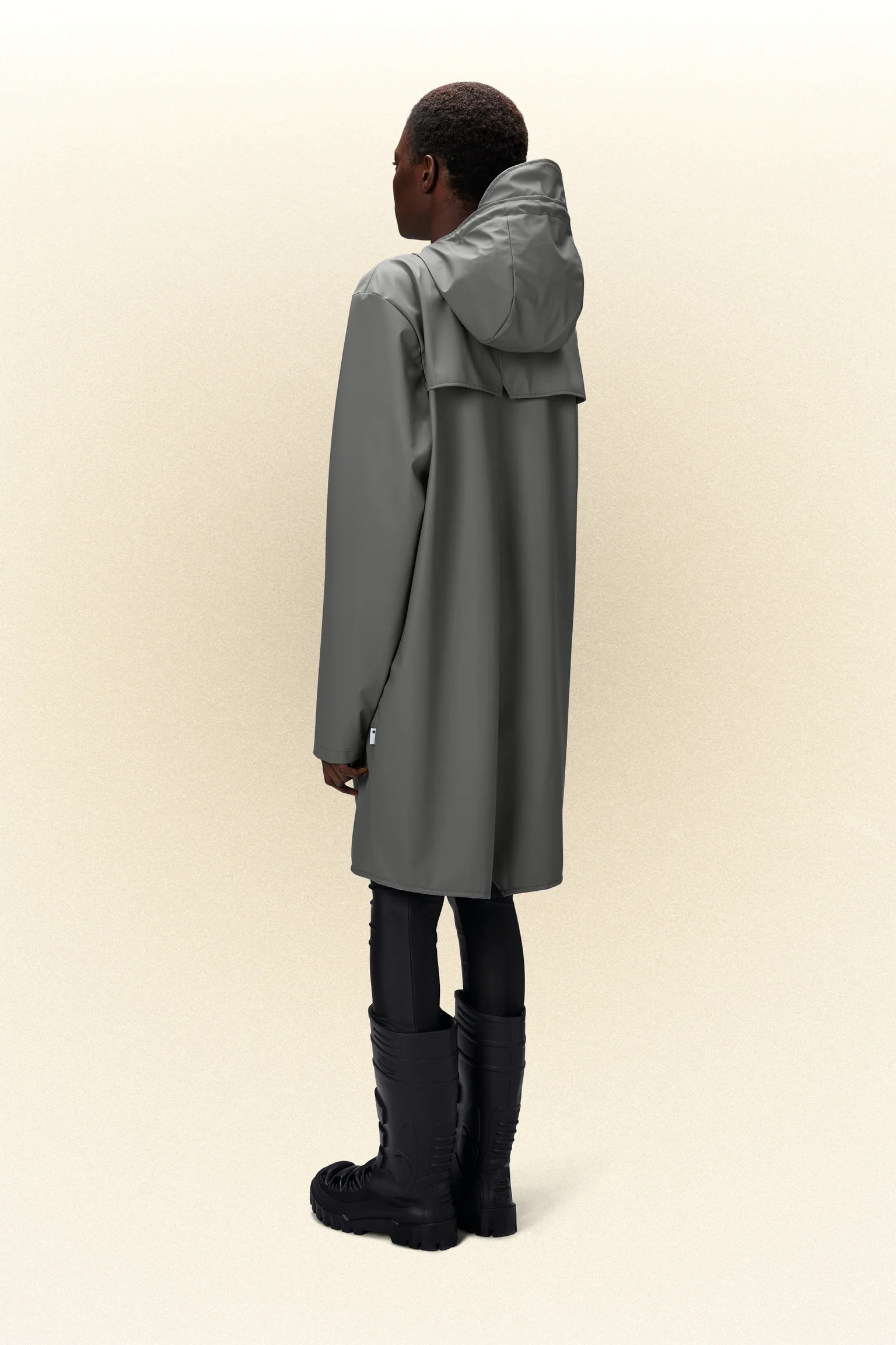 Long Jacket is a longer version of Rain’s classic design, Jacket. This ever-contemporary unisex rain jacket delivers high functionality in a minimal silhouette. Features include double welded slanting flap pockets, adjustable cuffs and a fishtail hem. The look is finished with snap fastenings, under-arm eyelets, and a back yoke with concealed vents.