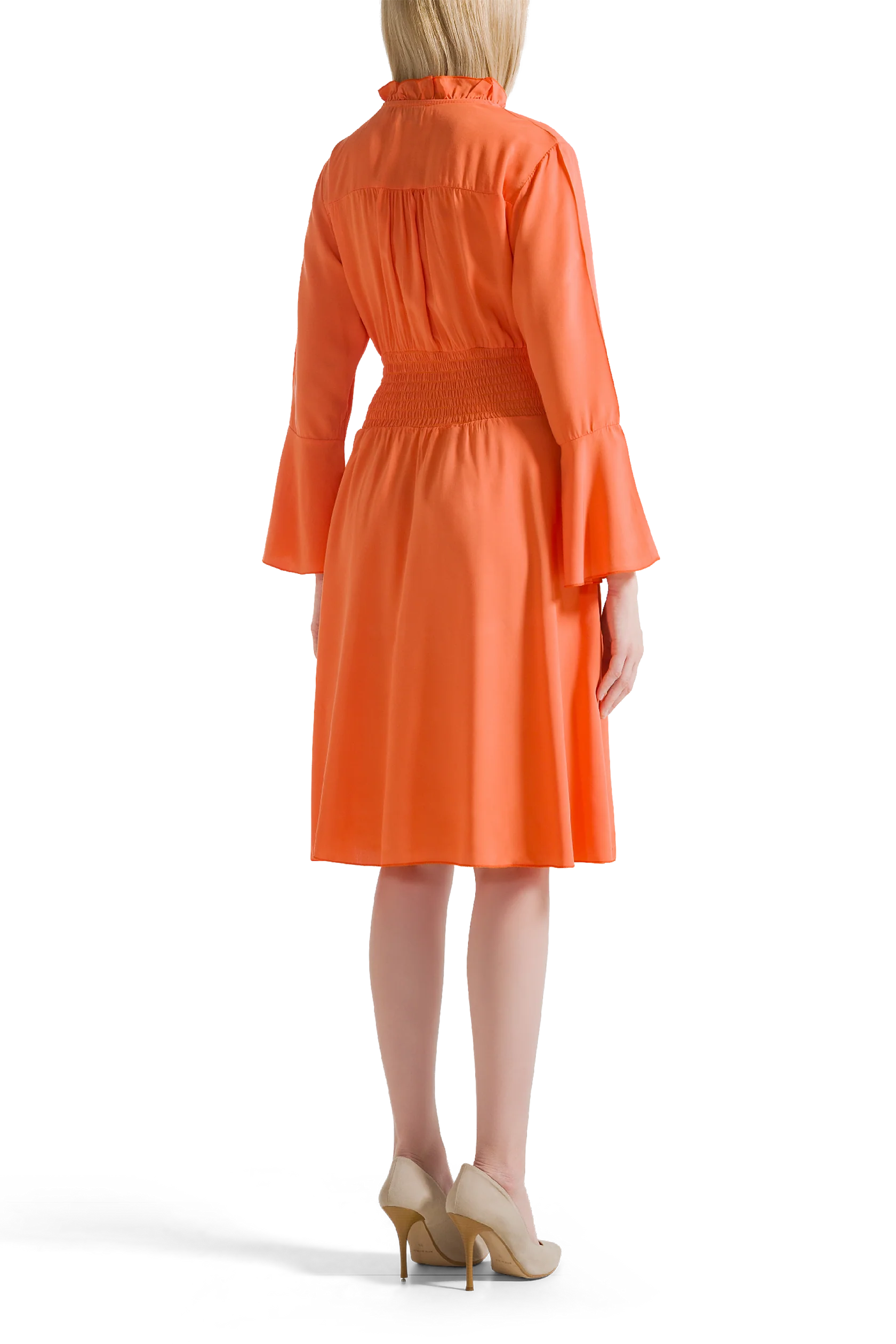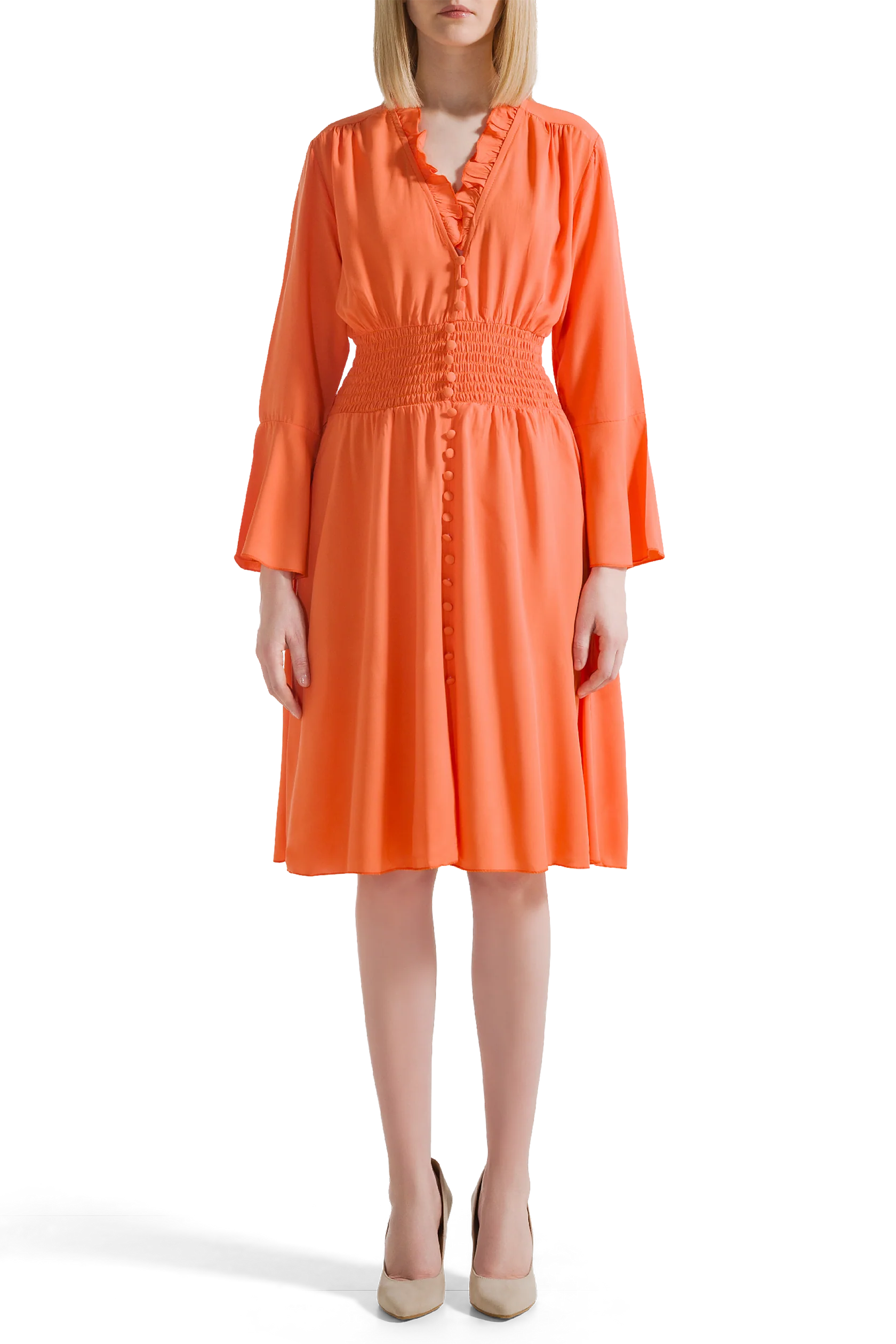 Sally dress in short length with smock waist which makes it look feminine and exclusive. The sleeves are wide and 3/4 length. Made of 100% viscose. Sally dress has been designed with details such as buttons in the front and frill hem by the neck. We recommend wearing it this season with tights and a pair of boots or heels.