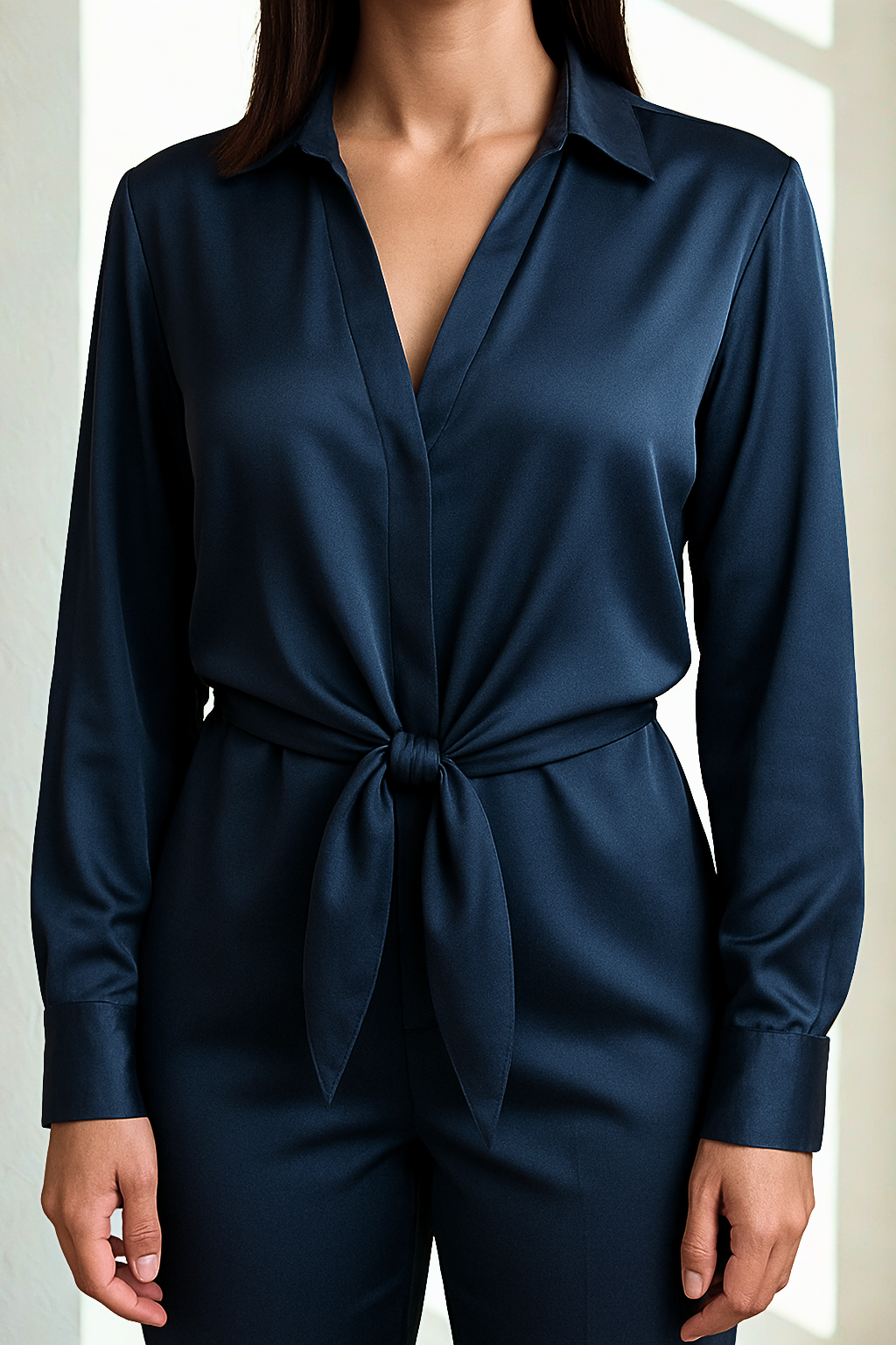 Give your outfit a contemporary update with washable stretch silk Thai Top from Silk95Five. A feminine silk silhouette, intended to fit like a classic button down, featuring a tie front detail and a stunning dipped back hem for ideal coverage. A timeless day-to-night staple with understated appeal, wear yours with everything from wide-leg to leather skirts