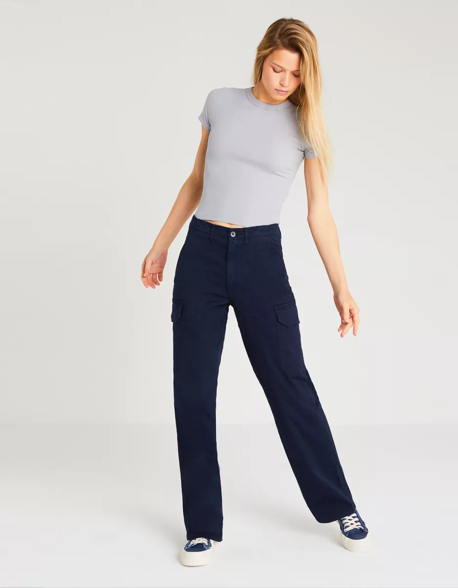 Featuring convenient pockets on the thighs, these cargo trousers offer both utility and a touch of utilitarian style. Perfect for a casual day out or versatile styling, these Navy Cargo Trousers are designed for those who appreciate comfort without compromising on fashion.