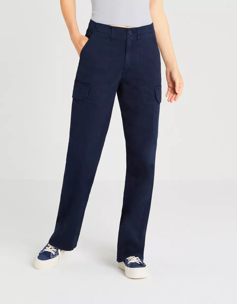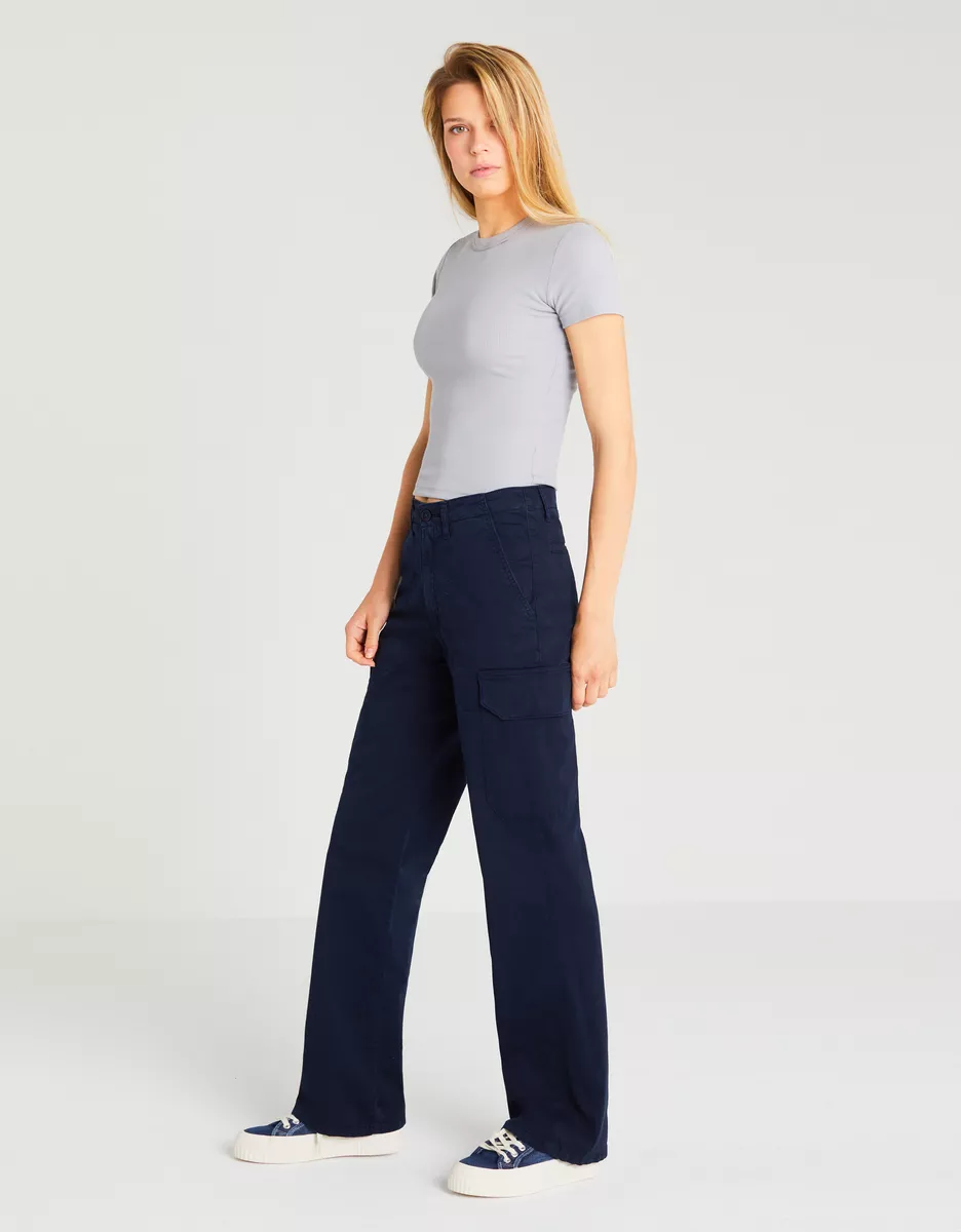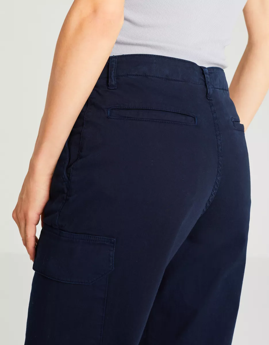 These Navy Cargo trousers from Reiko boast a relaxed and casual fit with a straight leg silhouette, providing a laid-back yet stylish look. The medium rise ensures a comfortable fit around the waist. Cotton rich fabric makes them a perfect piece for summer days.