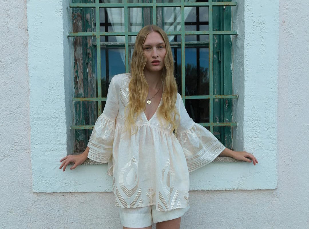 The Tunic Feather Bell 0183 is a must-have for any holiday wardrobe! This lovely Greek-inspired tunic features a beautiful mid-sleeve design and is made out of soft and comfortable etoil linen. Whether paired with jeans or shorts, it's the perfect piece for a stylish and effortless look.